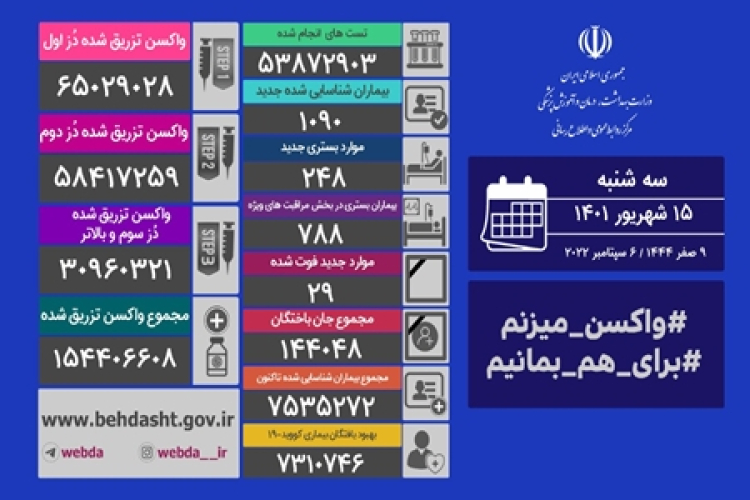 شناسایی ۱۰۹۰ بیمار جدید کووید۱۹ در کشور