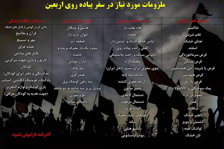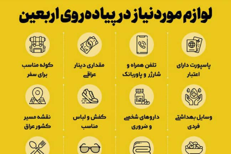 ملزومات مورد نیاز در سفر پیادهروی اربعین