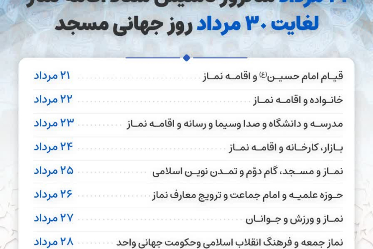 21 مرداد سالروز تاسیس ستاد اقامه نماز لغایت 30مرداد روز جهانی مسجد گرامی باد