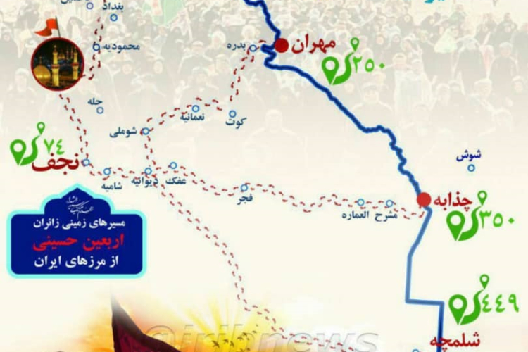 مسیرهای زمینی زائران اربعین حسینی از مرزهای ایران