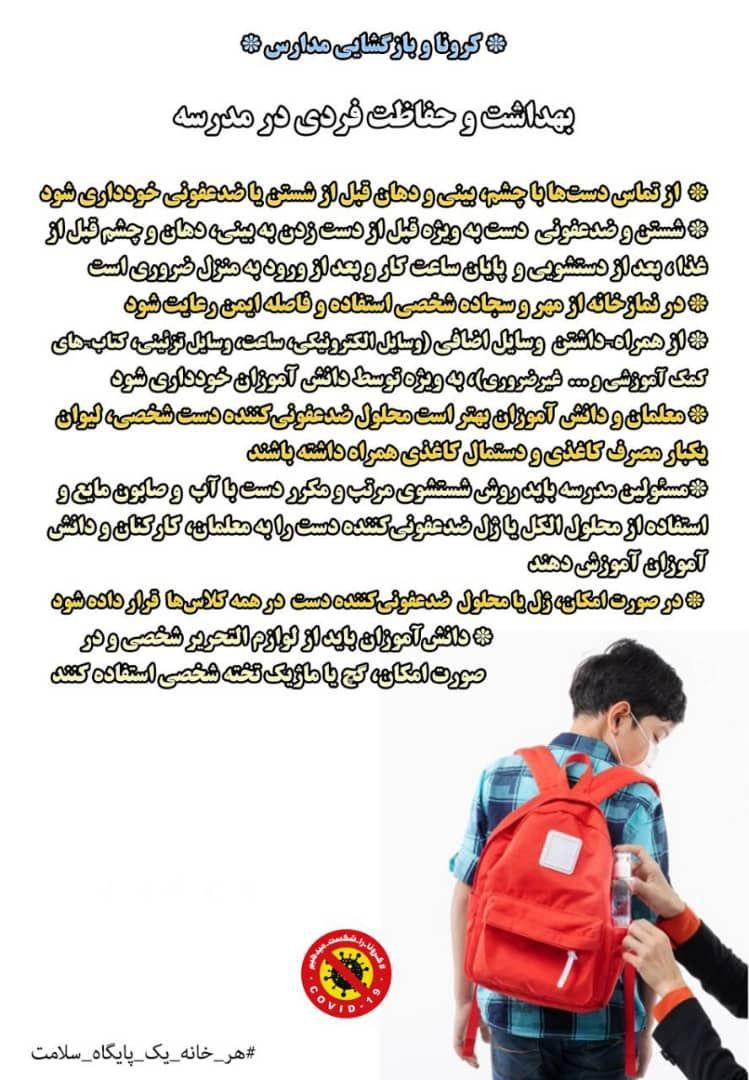 توصیه های کرونایی، بهداشت و حفاظت فردی در مدرسه