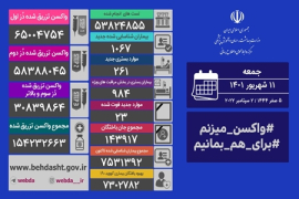 ️در شبانه روز گذشته ۱۱ هزار و ۹۲۱ دُز واکسن کرونا در کشور تزریق شده است.