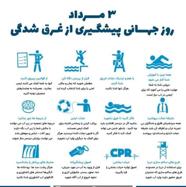 هفته جهانی پیشگیری از غرق شدگی (۱ لغایت ۷ مردادماه) هفته جهانی پیشگیری از غرق شدگی (۱ لغایت ۷ مردادماه) با شعار "برای جلوگیری از غرق شدگی کاری انجام دهید"