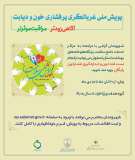 آگاهی زودتر _مراقبت موثرتر شهروندان محترم می توانند با ورود به سامانه OP.Salamat.gov.ir و ثبت اطلاعات مربوط به پویش ، فرم خود اظهاری را کامل کنند.