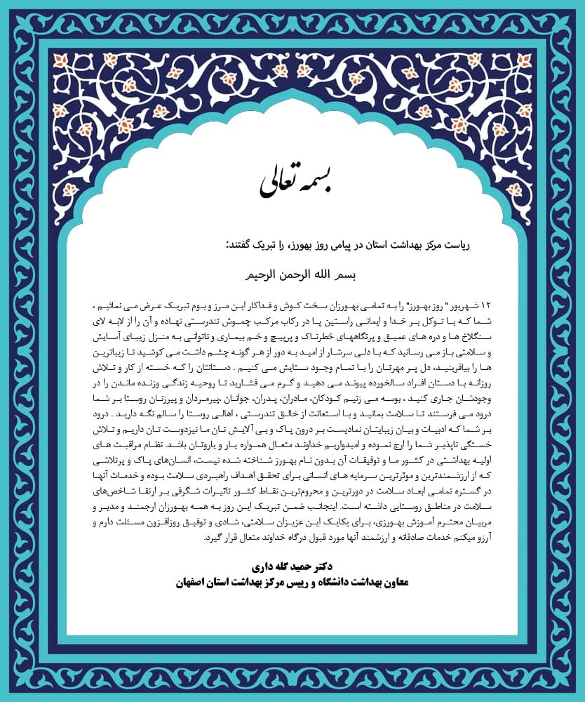 پیام تبریک دکتر گله داری به مناسبت فرارسیدن روز بهورز