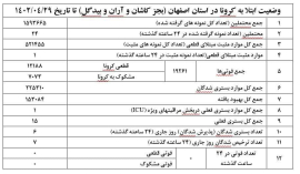 آمار وضعیت ابتلا به کرونا در استان اصفهان آمار وضعیت ابتلا به کرونا در استان اصفهان ( بجز کاشان و آران و بیدگل) تا روز پنجشنبه مورخ ۱۴۰۲٫۰۴٫۲۹